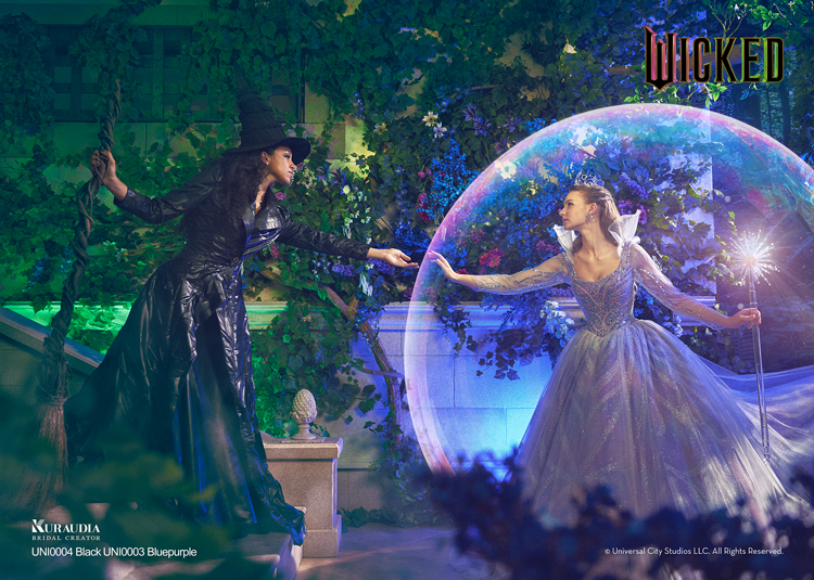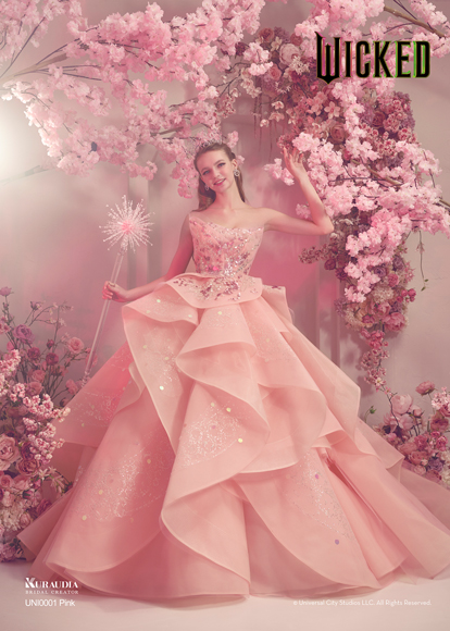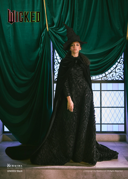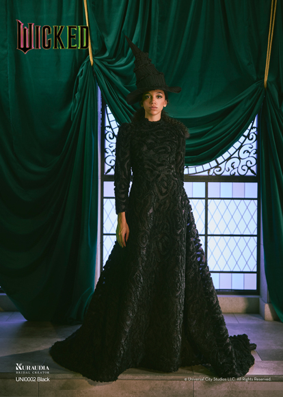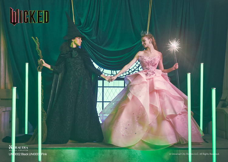 映画の高揚感やキャラクターの存在感をそのまま纏えるよう、色彩・装飾・素材感のひとつひとつを丁寧に再構築。映画の世界観を忠実に感じられる完成度でありながら、ウエディングドレスとしての優雅さと気品も兼ね備えた、クラウディアならではの特別なシリーズとなっています。映画『ウィキッド』を愛するすべての方に贈る、ドレスコレクションです。