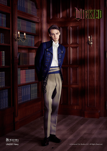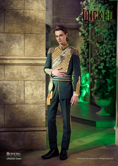 映画『ウィキッド永遠の約束』の象徴的な「フィエロ」の衣装から着想を得た、ナポレオンジャケットスタイルのセットアップタキシードです。